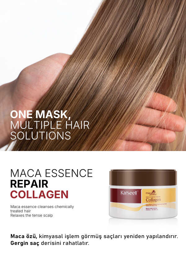 KARSEELL Maca Özü Onarıcı Repair Kolajen Saç Maskesi 500 ml + Maca Özü Nemlendirici Şampuan 500 ml Karsel