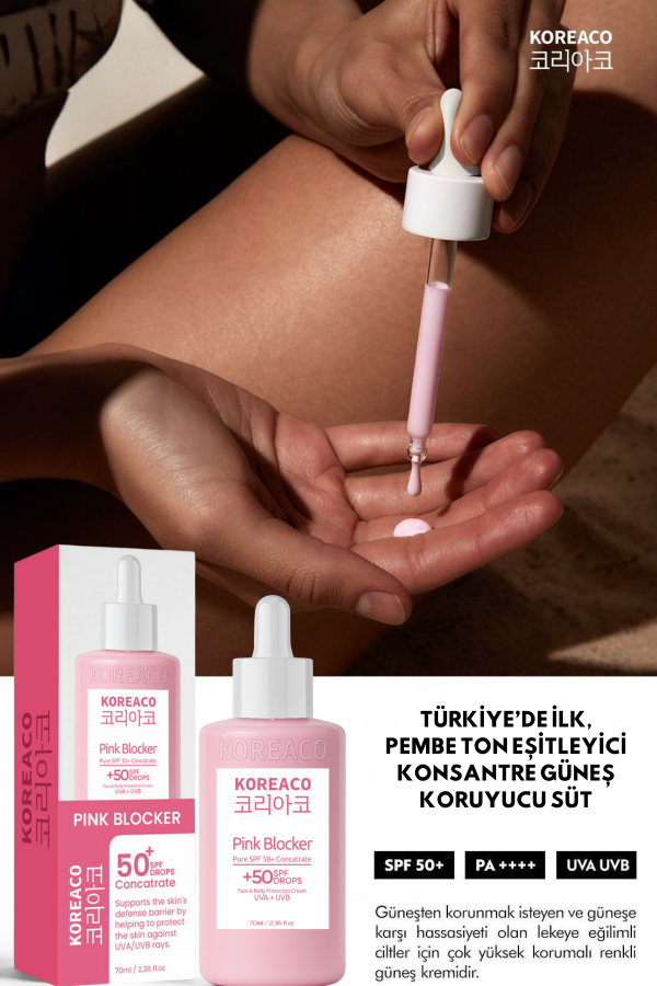 Gelince Haber VerKOREACO Blocker Pink %100 SPF 50+ Ton Eşitleyici Yüksek UVB+UVA Korumalı Güneş Sütü 70ml